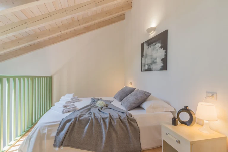 Il soppalco ospita la camera da letto con letto matrimoniale.