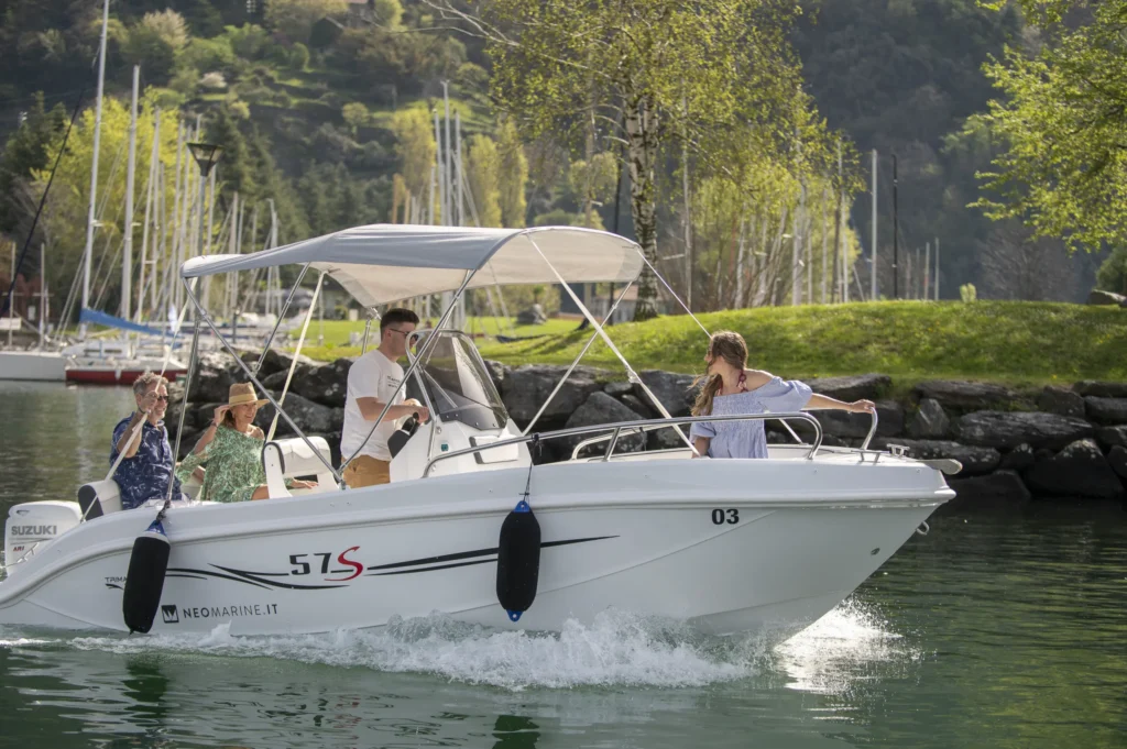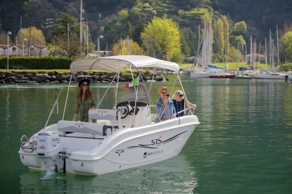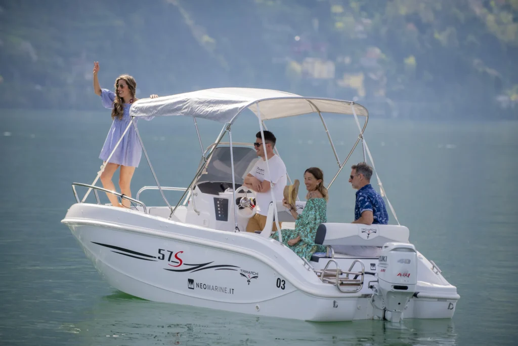 Rent a boat and experience the lake in total freedom, without the need for a licence. With its elegant style and intuitive steering, it allows you to set sail independently and discover hidden corners, crystal-clear waters and breathtaking views. She can accommodate up to six people, making her perfect for a romantic getaway, a day out with friends or special family time. Her spacious sundecks fore and aft invite relaxation in the sun. Every outing is an experience to be enjoyed with the wind in your hair, the sun on your skin and the freedom to set your own course, at your own pace and according to your wishes.